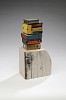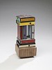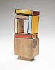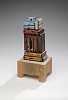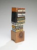salvage steel, oil paint, rivets, encaustic, wood, swivel turntable, bee's wax, canvas, hardware, 6 1/2 x 6 1/2 x 6 1/2 in.