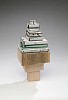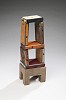 salvage steel, oil paint, rivets, encaustic, wood, swivel turntable, bee's wax, canvas, hardware, 6 1/2 x 6 1/2 x 6 1/2 in.
